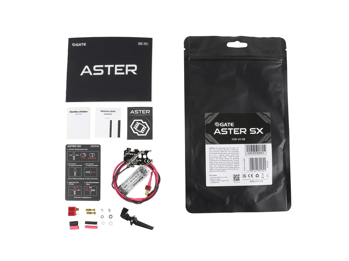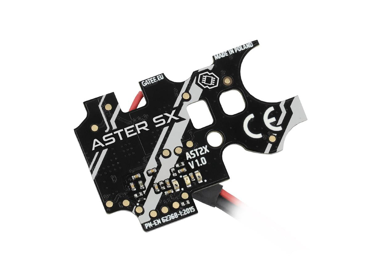 ASTER SX for V2 gearboxes the natural successor of ASTER SE merges years of experience with cutting edge tech. ASTER SX is fully compatible with popular brushless motors even with batteries up to 11.1 V. The unit heats up less even while accommodating higher loads. ASTER can operate with stronger springs and more demanding configurations. ASTER SX comes with a free Quantum Trigger, so you can easily set sensitivity from ludicrous touch through hair to full movement. Improved programming via trigger gives you settings such as automatic Pre-Cocking, trigger sensitivity adjustment, Active Brake settings with top-class adaptive mode. Calibration available just via trigger and selector movement. ASTER V2 SX turns your AEG into future-proof advanced training equipment. All this, along with a thicker and sturdier PCB 1 mm in thickness makes ASTER V2 SX one of the most durable ETUs on the market.