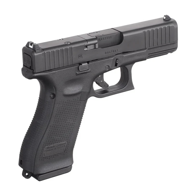 This GLOCK 45 is the perfect combination of compact slide length, Gen 5 features, Model 17 magazine capacity and now MOS plate (NOT Included) compatible slide so you can mount up your favorite micro reflex sight. The GLOCK 45 with MOS (Modular Optic System) optic plate mount (NOT Included) is powered by green gas and compatible with existing magazine. With full blowback operation, this GBB launches .20 gram BBs at 300 FPS and has an ambidextrous slide stop, and reversible mag release. With MOS optic plate kit (NOT Included), you can mount the micro pistol optic of your choice to the slide of this GLOCK 17 Gen 5 MOS.
