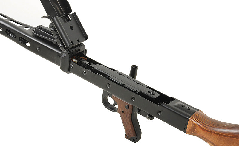 The wooden stock not only complements the replica's historical authenticity but also features a designated space to house the battery, allowing for a seamless integration of modern technology. Adding to its realism, the replica boasts a fully adjustable Hop-Up system, enhancing accuracy and performance on the airsoft field. The Hop-Up adjustment mechanism is conveniently located under the bolt cover.