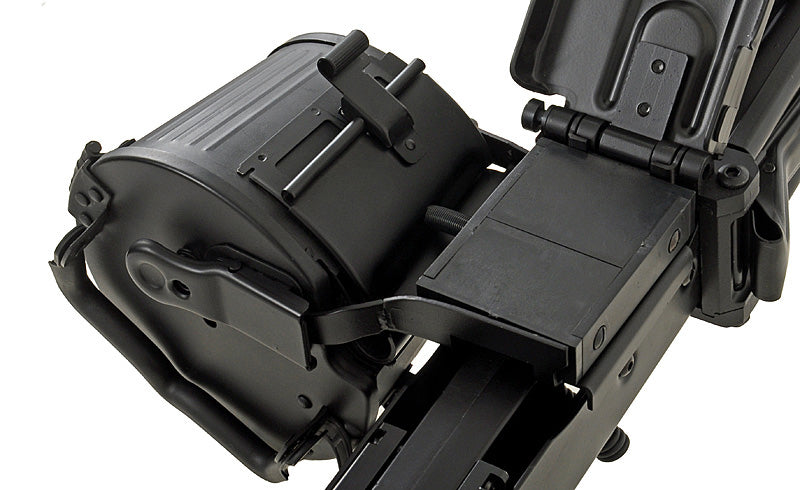 One standout feature is the 2500-round drum magazine, providing ample ammunition during intense airsoft battles. The magazine is powered by four AA batteries (not included in the package), ensuring consistent and reliable performance.