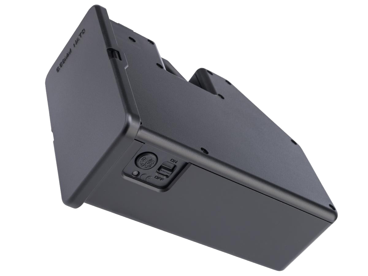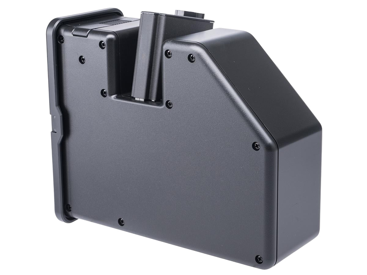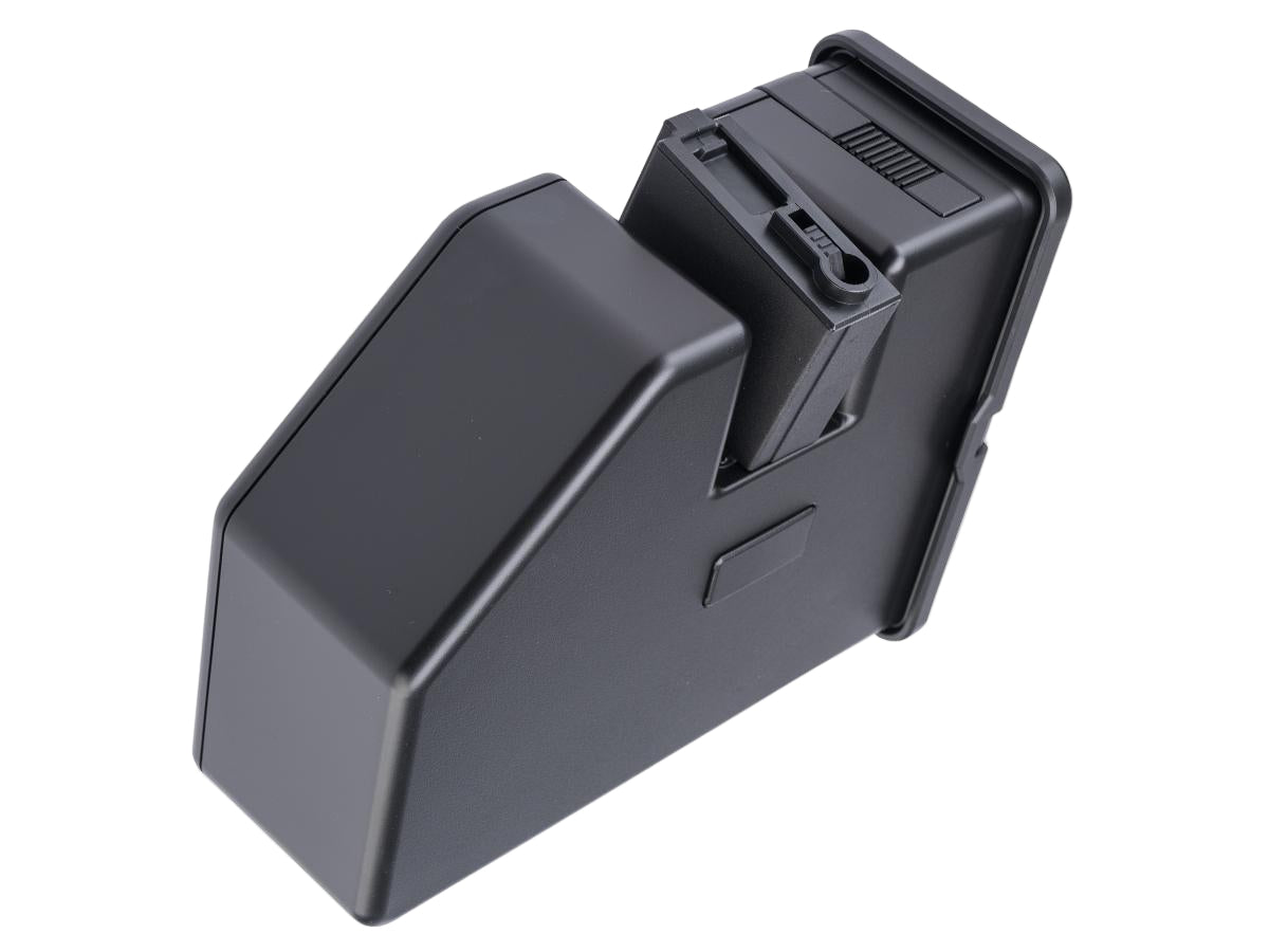The KRYTAC AEG LMG Drum Magazine is a motorized hi-capacity option for your KRYTAC LMG, Trident series rifles, and other M4 body variants. Utilizing a small (not included) 9V battery, this massive 5,000 round drum magazine can dish out large amounts of firepower at your opponents. Simply press the button and wind up your magazine for lots of shooting fun at your finger tips.