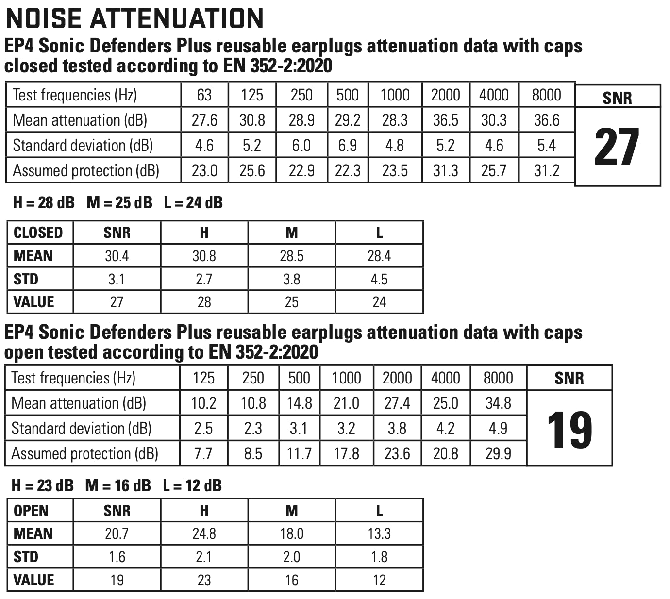 Listen To Your Ears. Your hearing health should never be ignored. SureFire EP4 Sonic Defender Plus will protect your hearing against Noise-Induced Hearing Loss (NIHL) without compromising your ability to hear routine sounds or conversations in noisy environments. Their triple-flanged-stem provides a Noise Reduction Rating (NRR) of 24 dB. Safe sound levels are allowed to pass through into the ear canal, while potentially harmful noises (above 85 dB) are reduced via our proprietary noise-reducing filter. EP4s include attached filter caps that can be inserted for additional protection, blocking out lower-level noise, like that heard on an airplane, where hearing ambient sounds or conversations isn't critical. Sonic Defenders are made from a soft, durable, hypoallergenic polymer that provides all-day comfort and extends product life (up to 6+ months, depending on usage and care).