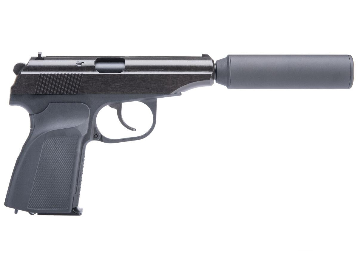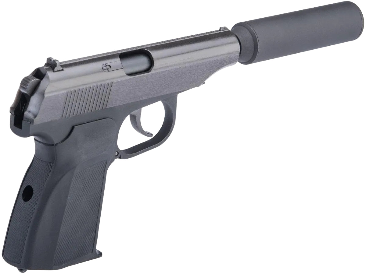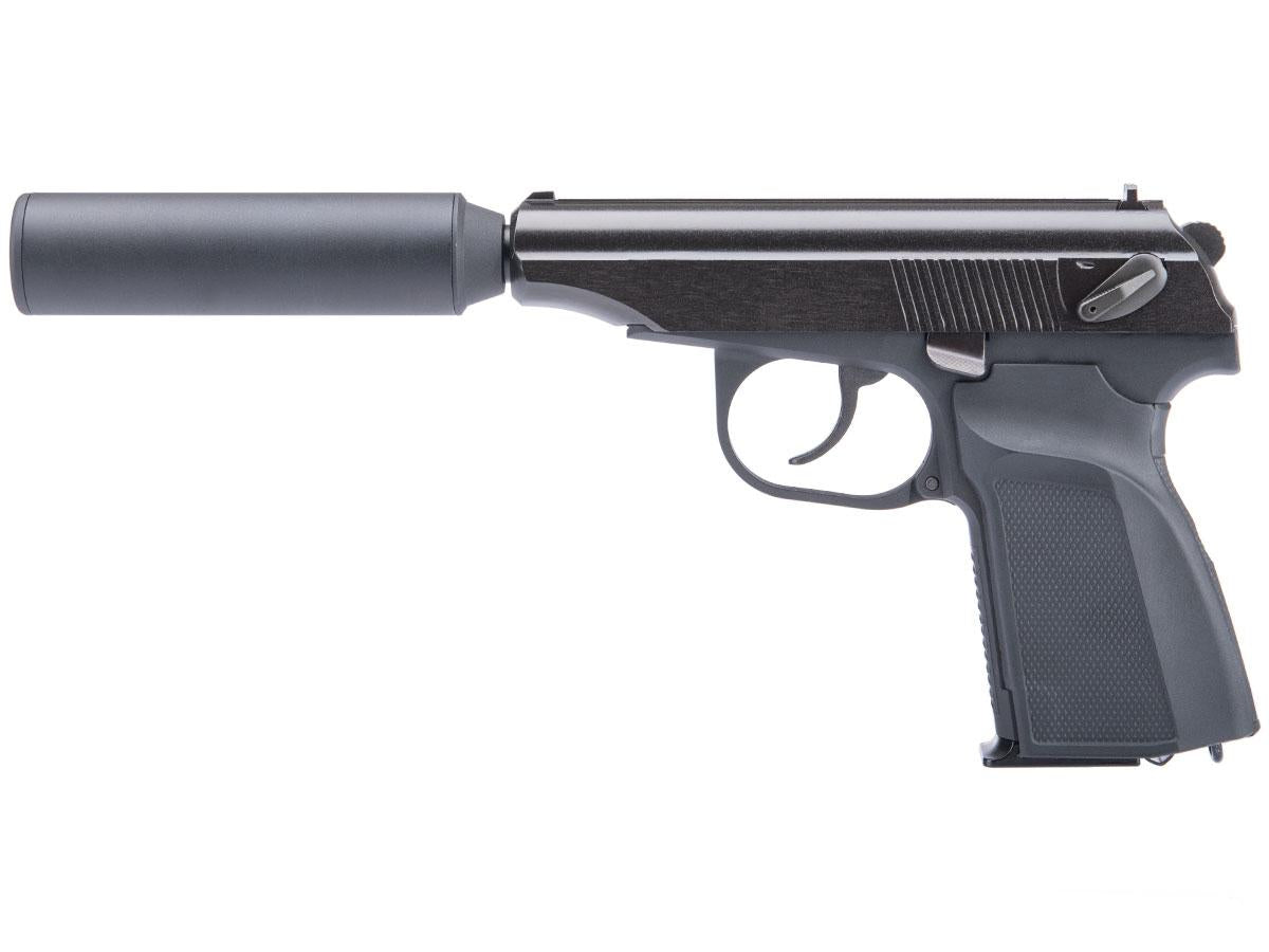 WE-Tech's Russian PMM is a full metal framed, polymer ergonomic gripped gas blowback airsoft pistol with realistic disassembly and crisp action. Included with the package is a removable mock suppressor and inner barrel extension that offers improved accuracy and measurable power differences over the stock orientation. Trigger actions provide both single and dual action modes while the slide boasts the integrated safety switch. The lower grip mounted magazine release and lanyard attachment loop stays true to the real thing.
