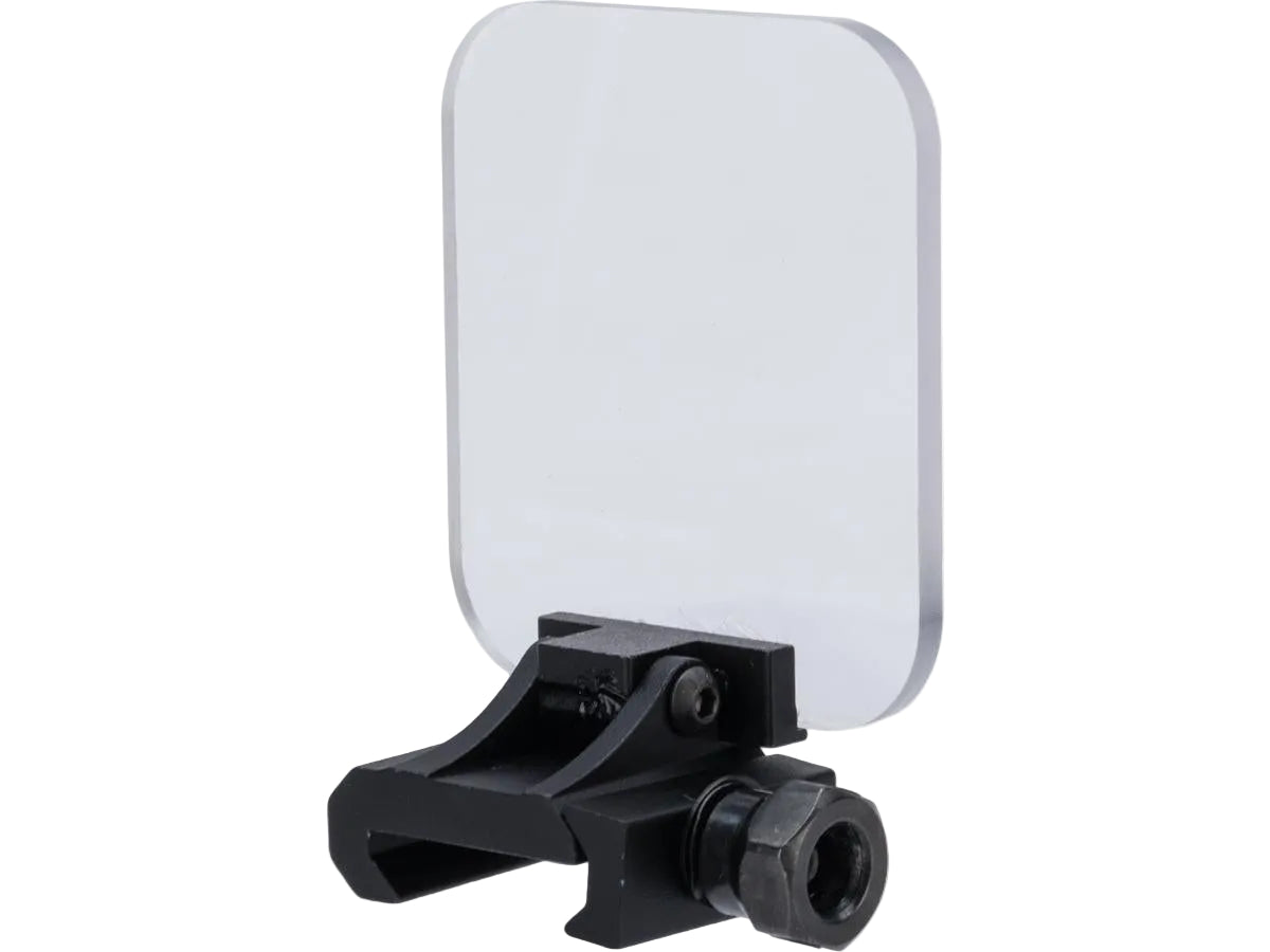 The clear see-through acrylic lens mounts in front of your optics as a protective shield against flying BBs and other types of debris. The mount is quickly attached to any picatinny rail without the use of any tools. For storage, the lens can be flipped down to accommodate a smaller profile for transport and storage
