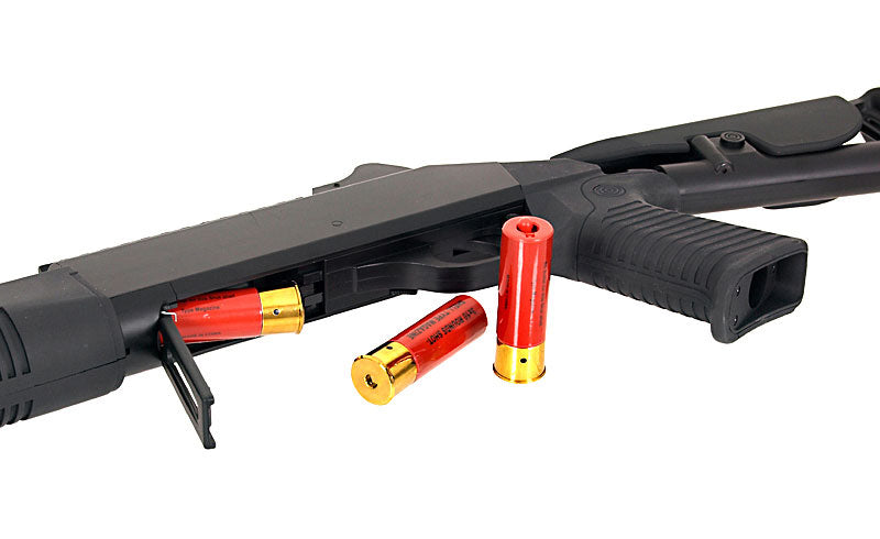 Double Eagle's M56DL Tri-shot shotgun is a great starter shotgun for any airsoft player. The tri-shot feature means that 3 BBs are fired simultaneously in true shotgun fashion!