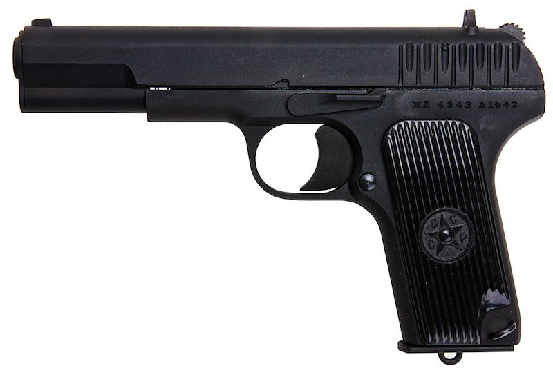 Experience the pinnacle of airsoft authenticity with the SRC TT33 SR-33 GBB Airsoft Pistol. This exceptional replica boasts a full metal construction and meticulously engraved CCCP markings, capturing the essence of its legendary predecessor. Equipped with a 12-round magazine, it ensures sustained firepower during intense engagements. The pistol's snappy recoil adds a realistic touch, immersing you in the action. Built to last, the durable construction guarantees longevity in the most demanding battles. Elevate your airsoft game with the SRC TT33 SR-33 GBB Airsoft Pistol and dominate the field with its unrivaled craftsmanship, attention to detail, and performance.