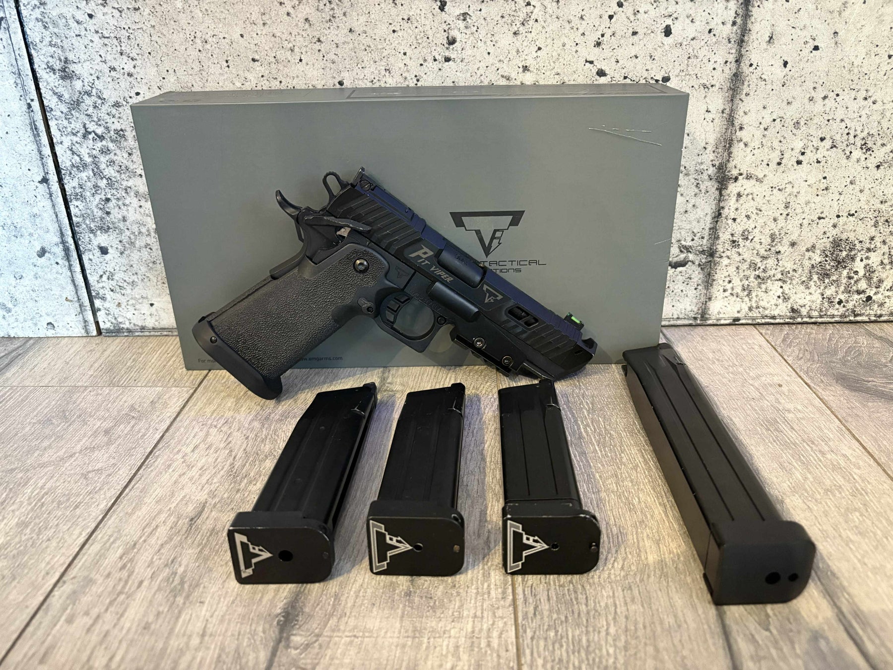 • New premium "V2 Finish" and process making this the best looking JAG Arms TTI pistol to date - this simulates the black DLC coating on the real Pit Viper which gives a high gloss black finish mixed with matte black accents on the slide