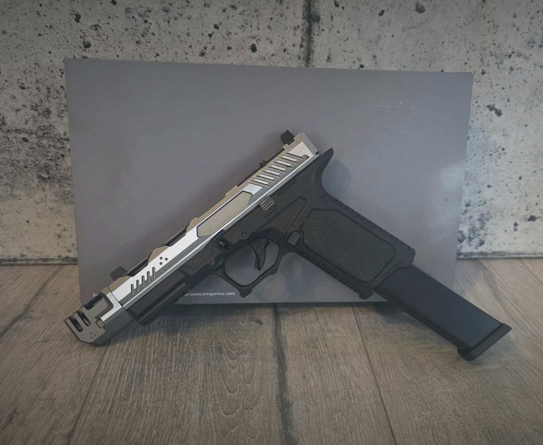 EMG SI ARK pistols feature Strike's unique frame design, carefully modeled after SI's upcoming STRIKE 80 pistol frame. Strike's frame is an ergonomic, practical, and aggressive pistol frame solution. The frame grip features a distinct texture, giving the user positive grip on the pistol. Further forward, the frame features an undercut trigger guard for added ergonomics and control. At the front of the frame is a 20mm accessory rail, able to accommodate lights, laser, and other 20mm pistol accessories.